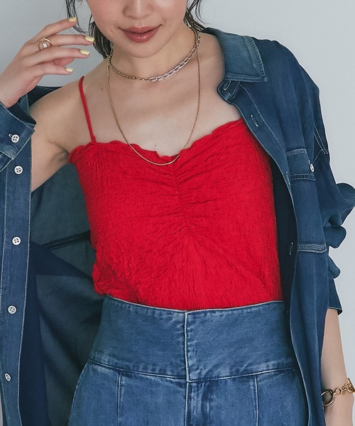 繊細な表情で魅せる、一味違うデザインキャミソール ●デザイン ふんわりと柔らかなシャーリングが、女性らしいシルエットを際立たせるキャミソール。 一見シンプルながらも、細部にまでこだわったデザインが、着る人の魅力を引き立てます。 凹凸感と生地の程よい厚さで身体のラインを拾いにくいのが嬉しいポイント。 細い肩ひもが女性らしさと華奢見えをかなえます。 肩ひもはアジャスター付き調整も可能で、取り外してビスチェとしてもご使用いただけます。 ●ポイント ・肩紐は調整可能なアジャスター付き ・ビスチェとしても使える ・身体のラインを拾いにくい ・手洗い可 ●おすすめのコーディネート デニムやチノパンと合わせて、リラックス感のあるカジュアルスタイルに。 一枚でヘルシーな着こなしはもちろん、 シャツやジャケットのインナーとしてもおすすめです。 洗濯方法:手洗い 透け感:なし 光沢:なし 裏地:なし 生地の厚さ:ふつう 伸縮性:ややあり ※商品の素材特性上、多少の乱寸がございます旨ご了承ください。 【注意点】 ※画像の商品は光の照射や角度、お使いのモニター環境により、実物と色味が異なる場合がございます。あらかじめご了承下さいませ。 【お買い物をもっと便利に楽しく♪】 『♡』をクリックでお気に入り登録 ♡「商品のお気に入り登録」で・・・ ラスト1点や再入荷の通知が届きます。 登録して頂いた商品だけが対象となる、あなただけのタイムセールが開催されることも! ♡「ブランドのお気に入り登録」で・・・ 新商品や再入荷など、いち早くブランドのお得な情報を 受け取ることができますので、ご登録をおすすめします!