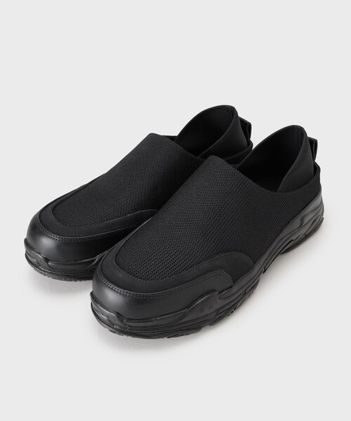 【素材】合成皮革と合繊素材を使用しています。素材の組み合わせが異なる2タイプからお選びいただけます。〈019カラー〉「スムース調の合成皮革」をベースに、爪先に「ヌバック調の合成皮革」と「スポーティな合繊素材」の掛け合わせ。〈119カラー〉「スポーティーな合繊素材」をベースに「スムース調の合成皮革」と「ヌバック調の合成皮革」の掛け合わせ。【デザイン】トレンドの「サボ」としても「スリッポン」としても履ける2WAYタイプ。踵を内側へ倒して踏むことで、簡単に「サボ」として履ける構造になっています。クリーンな印象のヌバック調・スムース調の合成皮革とスポーティな合繊素材を組み合わせることで、スラックスからデニムまで幅広いスタイルに合わせていただける一足に仕上げています。- BRAND CONCEPT -時代を超えて支持されるトラディショナルなアイテムをベースに、アソビ心とストリートの自由な発想を取り入れ、日本独自のミックススタイルを提案します。【気になる商品はお気に入り登録をおススメ】▼商品のお気に入り登録完売しているカラーの再入荷通知や、ラスト1点、セールの通知をお知らせいたします。▼ブランドのお気に入り登録新商品や再入荷など、いち早くブランドの情報を受け取ることができます。※照明の関係により、実際よりも色味が違って見える場合があります。また、パソコン・スマートフォンなどの環境により、若干製品と画像のカラーが異なる場合もございます。店舗へのお問い合わせ商品番号:170-02616●製品寸法:55(25.5cm):ヒール高4.7cm65(26.5cm):ヒール高4.7cm75(27.5cm):ヒール高4.7cm備考:重量:片足約410g(サンプルサイズ)