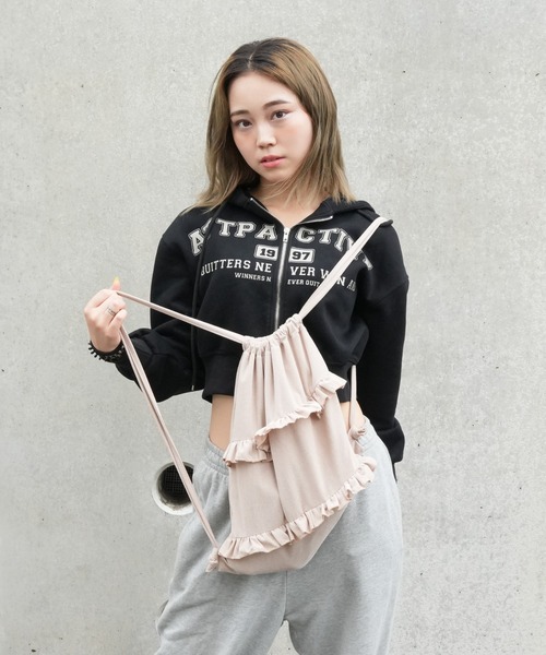 【 SORUTT / ソルト 】 フリル レトロ ナップサック # \ フリフリのフリルの容量感たっぷりナップサック♡ / POINT 手触りのいい生地で、季節問わずどんなコーディネートにも合わせたくなるアイテム! 2段フリルがガーリーで一気に女の子らしさをプラスしてくれます♡ さらに、普段使いしやすく飽きない3カラー展開となるためお好きなテイストに合わせてお使いください♬ SIZE FREE …………… 透け感:なし 伸縮性:なし 裏地:あり ポケット:なし …………… ※撮影・モニター環境等により実際の商品の色味と異なって見える場合がございます。 ------------------------------------------------------------------------------------------- 【SORUTT】~ a symbol for all...~ SORUTT(ソルト)は、ひとつひとつが溶けて馴染んでいく「塩」のように。 日常のコーディネートに自然と溶け込みながらも、確かな存在感と意味を持つというコンセプトにより誕生したブランドです。 モード・ストリートを基盤とした洗練された空気感とトレンドの融合。 Instagram:@sorutt_official ------------------------------------------------------------------------------------------- 〈商品のお気に入り登録〉 お気に入りの登録をして頂きますと セールの通知・ラスト1点になった時の通知や、再入荷通知を受けることができます。 〈ブランドのお気に入り登録〉 新商品の発売や再入荷、タイムセールやクーポン発行のお知らせなど お得な情報を受け取ることができます。