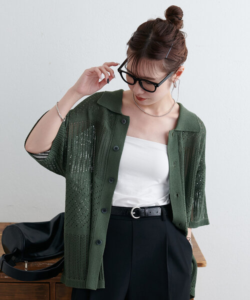さらっと1枚、大人の抜け感をプラス ●デザイン 繊細な透かし編みで施された、涼しげで季節感たっぷりのニットカーディガン。 ボタン付きでプルオーバーとしても、羽織りとしても着られる2WAY仕様。 立体感のある編地の切り替えが表情を加え、さりげなくおしゃれ度をアップします◎ ゆったりとしたシルエットで、抜け感のあるリラックススタイルが叶います。 ●素材 なめらかな肌触りで着心地抜群 通気性があり、暑い季節も快適に過ごせます *********************** 洗濯方法:クリーニング 裏地:なし 透け感:あり 伸縮性:あり 光沢感:なし 生地の厚さ:普通 *********************** ●スタイリング タンクトップやキャミソールと合わせてさっと羽織るだけで季節感アップ! デニムやチノパンと合わせてカジュアルに、スラックスと合わせてきれいめカジュアルにも。 イージーパンツやスウェットパンツと合わせてラフにも着こなすスタイルもおすすめです。 ▼おすすめのスタイリングアイテム とろみイージーパンツ≪メンズサイズあり≫ 【ユニセックス】デニムタックワイドパンツ 裏毛センタープレスワイドパンツ ●STAFF着用コメント 158cmレディーススタッフ:プルオーバーとしてもボタンの外して羽織としても使えるので、着回し力抜群! 169cmメンズスタッフ:2種類のデザインが交互に配置されていることで、よりこなれ感のある仕上がりに!メンズでもゆったりと着られて、Tシャツの上からも楽に羽織れました。 【お取り扱いの注意】 ※着用時、洗濯時は必ず取り扱い表示・タグをご確認の上、お取り扱いください。 ・家庭洗濯不可 ・タンブル乾燥:不可 ・アイロン:低温120℃まで可能(アイロンの際は、当て布をしてください。) ・クリーニング:可能 ・引っ掛け、引っ掛かりに十分ご注意ください。 【カラー表記について】 システム上の都合により、一部カラー名がサイト表記と異なる場合がございます。 【入荷時期について】 入荷日ごとに販売数量が決まっているため、オンラインでは完売後に次期納期の数量にて予約販売を行っております。 店舗入荷アイテムは、店舗入荷時期と予約商品のお届け時期が異なる場合がございますので、予めご了承ください。 ※追加入荷のある商品もございますので、詳しい店舗入荷時期に関しましてはお近くの店舗へお問い合わせください。 ※店舗の在庫状況に関しましては、こちらのページに記載されている「店舗在庫」から確認にしていただけます。 「在庫あり」の表記でも、お取り置き分などでお客様に販売できない場合がございます。 ※予約商品でも、店舗では追加がない場合もございます。ご了承ください。 ※初回予約商品でも配送処理が発生するため、店舗より遅れてのお届けとなる場合がございます。