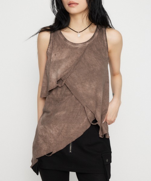 ■POINT:グランジ感のある染加工や、裾の切りっぱなしデザインがLAGUA GEMらしいトップス。■DETAIL:カットデザインやアシンメトリーに重ねたシルエットが他には無いアイテム。■STYLING:トップスに程よいボリュームがあるので、ワイドパンツはもちろん、細身のパンツなど様々なボトムと合わせて着用出来ます。■透け感:なし■光沢感:なし■伸縮性:あり■裏 地:なし※特殊な染め加工を行っており1枚1枚の染まり方、色の出方が違いますが不良品ではありません。色落ち注意し、淡い色、配色での着用を避けてください。必ず洗濯表記に従い洗濯してください。_____________________LAGUA GEM(ラグア ジェム)ー媚びない強さとしなやかな女性らしさが共存するスタイルーカジュアルなアイテムにストリート&ヴィンテージテイストをミックスメンズライクになりすぎない女性らしさとバランス感のある着こなしにこだわった新しいカジュアルスタイルを提案_____________________▼商品のお気に入り登録お気に入りアイテムの値下げ・再入荷・在庫1点などの通知を受け取ることができます。▼ブランドのお気に入り登録新商品や再入荷、セール、クーポン配布などお得な情報を受け取ることができます。SPRING & SUMMER(春服・夏服)