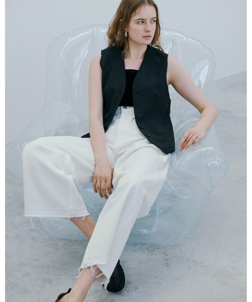 【撥水加工】【雨の日でもデニムで快適。リメイク風の加工&美脚シルエットにもこだわった高機能デニム】【Design/Styling】美脚シルエットにこだわった、本格派のデニムに定評のある『Mila Owen』。形のよさやデザインのかっこよさに加えて、梅雨対策として撥水加工を施した、機能性アップのデニムをリリースしています。水をはじくので雨の日も快適に着用でき、汚れにも強いのが特徴。ウエストや腰まわりはすっきりフィット、太ももから裾にかけてワイドなラインを出しており、美脚にみえるシルエットにもこだわったデニム。裾はリメイクで裾出しした古着のようなイメージのデザインで、こなれ感があるのもクールです。穿くだけで決まる完成度の高さなので、トップスを選ばず、あらゆるスタイリングの基本になってくれる一本。【Fabric】本格的な色落ち加工を施すなど、『Mila Owen』らしいデニムへのこだわりが◎。カラーは3色をご用意。涼しげできれいめに履ける<WHT>、全体に淡いユーズド風の色落ち感がリアルな<LBLU>、膝下にかけて濃くグラデーションのついた色落ちが新鮮な<BLU>で展開しています。※照明の関係により、実際よりも色味が違って見える場合があります。またパソコン・スマートフォンなどの環境により、若干製品と画像のカラーが異なる場合もございます。予めご了承ください。商品の色味は、商品単品画像をご参照下さい。 ※商品画像はサンプルのため、色味やサイズ等の仕様に変更がある場合がございますので、予めご了承ください。