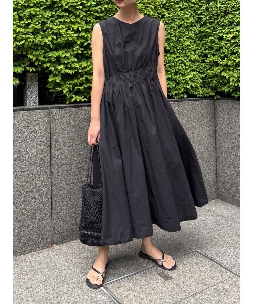 【デザイン&デティールのポイント】浅めのVネックとフロント部分のギャザーデザインが女性らしい、インド綿素材のノースリーブワンピース。シンプルながらスタイリッシュなデザインで、様々なシーンで活躍してくれる1枚です。脇まわりは少し余裕感があるので、汗染みなども気になりづらいのも嬉しいポイント!軽やかで風通しも良く、快適な着心地で暑い夏にぴったりなアイテムです◎■裏地なし■両サイドポケット付き■背中首元にボタン付き-----------------【Fabric】厚み:薄手伸縮性:なし肌触り:柔らかい裏地:なし透け感:若干-----------------