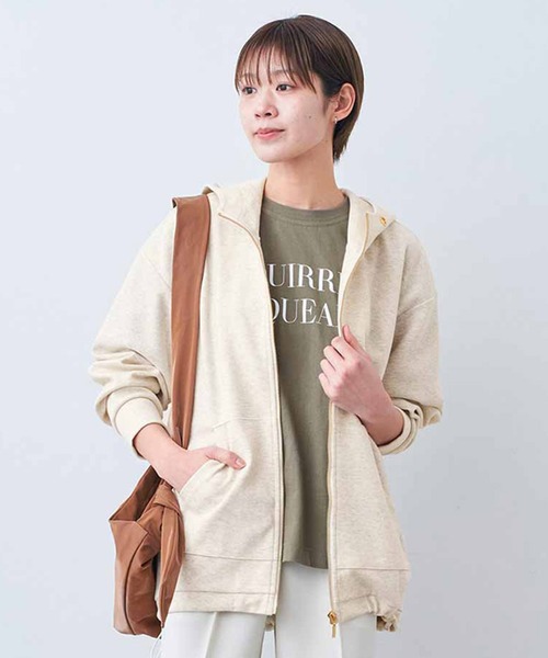 首まわりが自立して小顔に見える 大人の万能パーカー。 「ちょっと外出するのに暑いかな?寒いかな?みたいなとき、何にも考えずにはおれる万能なパーカーです。 こだわったのはフードが自立すること。 首まわりにボリュームがあるとあったかくて安心感があるし、小顔に見える。 生地の張り感のおかげでカジュアルすぎなくて、ジャケットとも合わせられます。 すそのドロストをしぼればバルーンぽく丈を上げられるし、下ろせばおしりが隠れるのもいい。 好きなスタイルやそのときのコーデと、もう何でも合っちゃうお守り的な一枚です」 はまじ:浜島直子さん 1976年生まれ。等身大ながらも抜群のファッションセンスと、周りをハッピーにしてくれる飾らない笑顔で大人気。 雑誌やテレビなど幅広いメディアで活躍するほか、1児のママとしても日々奮闘中!2023年には服にまつわる22の物語をつづった著書「けだま」を刊行。 ※フェリシモの商品には、紐などでくくられている紙タグは付属しておりません。