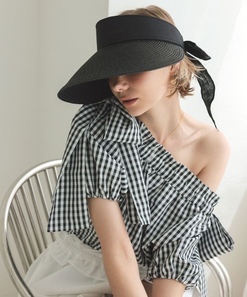 ラフィアサンバイザー■商品説明シーズンムードが高まるラフィアサンバイザー。キャップが被りにくいヘアスタイル時も気にせず着用可能。通気性の良い素材と、肌触りの良いスウェットバンドが額が触れる箇所に付いているので快適な被り心地。つばが広く長めなので小顔効果もあり、日差しからしっかりとお顔をガードしてくれます。バッグ部分はベルクロ仕様になっているので微調整もでき、リボンをプラスし甘さを加えました。リボンは結び方次第で、雰囲気も変えていただけます。海やプール、夏のレジャーシーンにもオススメなアイテムです。※UVカット率が約90%以上ですが、カラーによっては多少異なる場合がございます。■サイズ(cm)【OneSize】頭周り 約56-65(マジックテープで調整可能)、つば 約14、リボン 約46※平置き採寸のため若干のブレがございます。~*~*~*~*~*~*~*~*~*~*~*~*~*~*▼ 商品のお気に入り登録 ▼完売カラーの再入荷通知や、ラスト1点の通知、セールの通知も受け取ることができます。ぜひご登録ください♪▼ ブランドのお気に入り登録 ▼新商品や再入荷など、ブランドのお得な情報をいち早くお知らせ!ぜひご登録ください♪