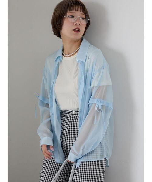 旬のシアー素材で軽やかな印象に仕上げた2WAYシャツ。 リボンのワンポイントも愛らしいアクセントをプラス。袖はセパレートが可能になっており、半袖としても着用することができます。 レイヤードコーデはもちろん、前ボタンを開けて羽織り代わりとしてなど、様々なスタイリングが楽しめるアイテムです。 ※商品画像は、撮影環境やお客様のご利用のPC・スマートフォンのモニター環境などにより実物と色味に差異がある場合がございます。 【その他採寸】 F 着丈:[前]69cm[後]73cm