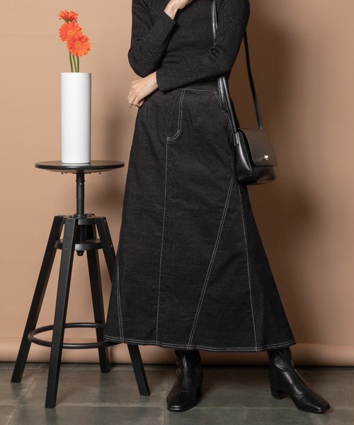 キレイめカジュアル派におすすめ ニューフェイス ベロアデニムのロングスカート ■POINT キレイめカジュアル派におすすめニューアイテム。デニムの上からベロアがプリントされ特殊加工されたベロアデニムスカート。ハギの切り替えがポイントになりキレイなフレアシルエット。脚長効果抜群のハイウエストで安心バックゴム仕様。 ■FABRIC 薄手のデニムの上からベロアがプリントされ特殊加工された素材。 ■COORDINATE キレイめからカジュアルまで幅広いトップスとコーデ頂ける万能アイテム。足元はスニーカーからパンプスやフラットシューズにもバランスよく着こなせるアイテムです。 ----------------------------------- 伸縮性:少し 厚さ:普通 重さ:普通 ---------------------------------- ★商品のお気に入り登録 登録すると、完売しても再入荷時に通知を受け取ることができます。 ほかにもお得な特典があるかもしれません♪ ★ブランドのお気に入り登録 新商品や再入荷などの情報を受け取ることができますので、是非ご登録ください♪