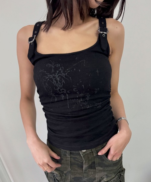 [POINT]-Y2kアイテム-ショルダーバックルで調整可能-ロゴデザイン-ヴィンテージムード-3color展開透け感 : 明るい色のみあり裏地:なし厚み : 普通季節感 : 夏伸縮性 :ややあり【FOLLOWIN】Make your daily outfit a little more joy ー普段着をもっと楽しくー※ご覧のモニター環境や撮影環境により実際の商品と多少色味が異なって見える場合がございます。※サイズの測定方法によって1~3cm程度の誤差が生じることがございます。※全ての商品の最初の洗濯はドライクリーニングをお勧めし、乾燥機のご使用はご遠慮ください。※洗濯不注意による商品の損傷の交換/払い戻しのご対応は難しくなっております。※濃いカラーの商品は素材の特性上、汗や水による色移りの可能性がございます。※明るい色の下着やバッグ、その他のアイテムとの摩擦、色移りにご注意ください。制作工程でより汚染の少ない環境配慮型染色で、使用する水や薬品の使用量をより削減したMADE KOREA ITEMでございます。アレルギーや敏感肌の方にも手に取っていただけるよう制作致しました。※ 生地の特性上、柄の制作にあたって製作過程によって同じ商品でも色味に違いが多少ある場合がありますが、これは不良理由の対象にならないたご購入間にあらかじめご確認の程お願いいたします。もっとお買い物を楽しむために!商品のお気に入り登録お気に入りの商品やサイズ・カラーまで、お気に入りの登録をしていただきますと、そのアイテムのセールの通知、ラスト1点になった時の通知や、完売しても再入荷通知を受け取ることができます!ブランドのお気に入り登録新商品の発売や再入荷、タイムセールやクーポン発行のお知らせなど、FOLLOWINがお届けするお得な情報を受け取ることができます!※通知はアプリでも受け取ることができますので、是非アプリの通知設定をお願い致します!※他のキャンペーンにより、期間中に価格が変動する場合があります。※セールは予告なく終了させていただく場合もあります。