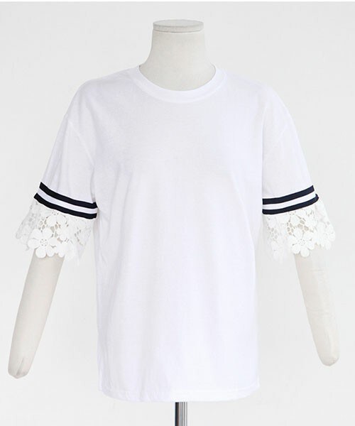 愛らしいレーススリーブのルーズTシャツ。ベーシックなラウンドネックでスタイリング力抜群!1枚着るだけでとっても華やかです♡袖のボーダー柄がポイントに♪ ※WEARに記載してある金額と、DHOLIC通販サイトに記載してある金額にシステム都合上誤差がございますが、正しい金額はDHOLIC通販サイトの方です。