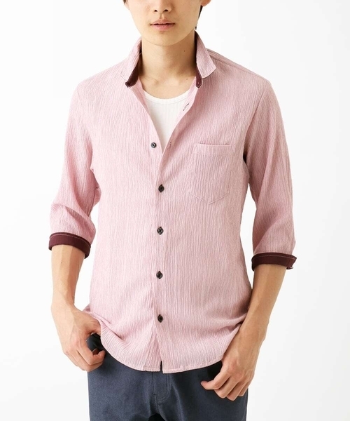 <素材> ・楊柳生地を使用⇒細かい経シワの入った織物。 肌に触れる面積が少なくなるので べとつかずサラッとした風合いが特徴 ・素材に使用している指定外繊維(テンセル)はユーカリ(木材)を特殊な溶剤で溶かして作られている「再生繊維」で、繊維の断面が円形であることから強度が高く、湿潤時の収縮や強度の低下が少ない繊維です。 <デザイン、機能> ・袖をまくりやすいように作られているため、腕を出すのが苦手な方にもおすすめです。 ・衿のさりげない部分やカフスにアクセントカラーを加えているのでシンプルかつデザイン性のあるアイテムに仕上がっております。 ・後身頃にダーツをいれてスマートなシルエットにこだわりました。 <生地感> ・透け感⇒色によってあり ・生地厚さ⇒うすい ・ストレッチ感⇒あり