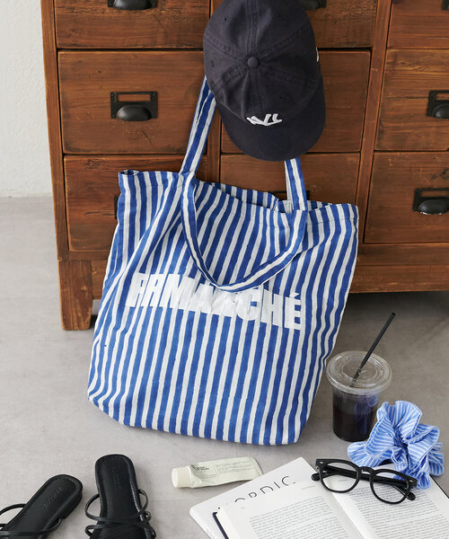 コーデのアクセントになるブロックプリントストライプトートバッグ。 11.5cmのマチがあり、600mlペットボトルやA4サイズ、ノートパソコンもすっぽりと入る大きさなのでマルチに活躍してくれます◎カラーごとに異なる表情を見せる個性豊かなストライプデザインと、フロントのさりげないブロックプリントのロゴがかわいいです♪持ち手が2WAY仕様になっているので、手持ちと肩掛けをその時の気分によって変えることができます。 【@fururi_______コメント♡】 今年も別注でマルシェトートを作らせていただきました☆ ストライプ柄に入った、白い太めのロゴがリゾート感を出してくれるトートです! FRMARCHEの『FR』はふるりとフランスをかけています。 フランスのマルシェにお買い物に行く時のトートバッグをイメージして作らせていただきました。 普段使いはもちろん、この夏のお出掛けやご旅行に、たくさん使っていただけると嬉しいです^^ ※生産工程や染料などの影響により特有の匂いがすることがございます。気になる場合は換気の良い場所で陰干ししてださい。 《容量の目安》 ・600mlのペットボトル ・A4サイズのノートやファイル ・ノートパソコン ・手帳(B6サイズ) ・iPad ・財布 ・携帯 ・ポーチ ・キーケース ・折りたたみ傘 ・ワイヤレスイヤフォン ・ハンカチ ・ティッシュ ・エコバッグ 《ポケット》 内装ポケット:オープンポケット×1 《シーン》 ・通勤や通学時に→マチと裏地があって丈夫なので荷物を沢山入れることができる◎ ・お出かけや旅行時に→セカンドバックとしても便利◎軽くて折りたたみやすいので、かさばらない♪ 【カラー表記について】 システム上の都合により、一部カラー名がサイト表記と異なる場合がございます。 【入荷時期について】 入荷日ごとに販売数量が決まっているため、オンラインでは完売後に次期納期の数量にて予約販売を行っております。 店舗入荷アイテムは、店舗入荷時期と予約商品のお届け時期が異なる場合がございますので、予めご了承ください。 ※追加入荷のある商品もございますので、詳しい店舗入荷時期に関しましてはお近くの店舗へお問い合わせください。 ※店舗の在庫状況に関しましては、こちらのページに記載されている「店舗在庫」から確認にしていただけます。 「在庫あり」の表記でも、お取り置き分などでお客様に販売できない場合がございます。 ※予約商品でも、店舗では追加がない場合もございます。ご了承ください。 ※初回予約商品でも配送処理が発生するため、店舗より遅れてのお届けとなる場合がございます。