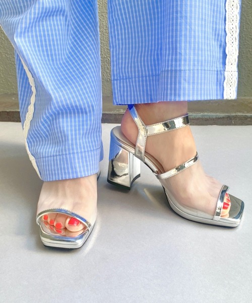 シアーなアッパーでシーズンムードを高めてくれるサンダル。透け感のあるチュール素材にキリリとパイピングで引き締めてスタイリッシュに仕上げました。 スクエアトゥのシルエットで大人なモード感をプラス。 安定感のある太めなヒールに足首トラップで履き心地も◎。