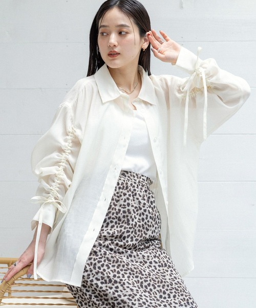 季節感溢れるシアーシャツが登場。 ■おすすめの着こなし ☆パンツと合わせるなら・・・ ハーフパンツやスウェットパンツと合わせることで、程よくカジュアルな着こなしが叶います。 ビーニーを被りアクセントをつけた、トレンドのメンズライクなスタイリングもおすすめです◎ ☆スカートと合わせるなら・・・ Iラインスカートなどのタイトなアイテムと合わせることで、きれいめなスタイルが完成します◎ レーススカートと着合わせた、フェミニンな着こなしも女性らしくておすすめです。 ■ポイント 程よい透け具合が季節感を感じさせてくれるシアーシャツが登場。 袖を絞ることで女性らしいシャーリングデザインに。2WAY感覚で着ていただけます。 オーバーサイズシルエットなので、着るだけでトレンドライクな着こなしに。 着回ししやすいモノトーンカラーに、暖かみを感じるライトピンクを加えたカラーバリエーションです。 コンパクトに持ち運べるので、日焼け対策や冷房対策にもおすすめな一着◎ シンプルなデザインで幅広いスタイリングと相性が良く、ロングシーズンお使いいただけるアイテムです。 ■素材 透け感のある軽やかな生地で仕立てたシャツ。 柔らかく肌触りの良い素材感で、着心地も抜群です。