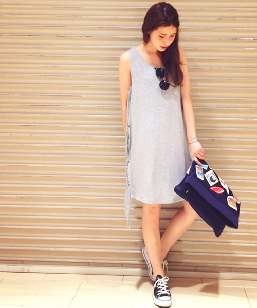 サイドフリンジタンクチュニック☆ シンプルながらも、サイドのフリンジによって今年らしいデザインに仕上げたチュニック。 大胆にハンドカットしたかのようなフリンジが存在感を放ち、一枚でトレンド感のあるスタイリングに格上げしてくれます。 ショートパンツを合わせたり、今シーズンは敢えてワイドパンツを合わせたリラックスした着こなしがオススメです◎ ※着用、お取り扱いの際は商品についておりますアテンションタグ、洗濯ネームを必ずご確認ください。 店舗にお問い合わせの際は、全国のAnother Edition店舗まで 下記の品名/品番をお申し付け下さい。 品名:AEBC SIDEフリンジTANK TUNIC 品番:56176992952 ※こちらの商品は一定期間、店舗にて正規販売価格で販売をしていた商品です。