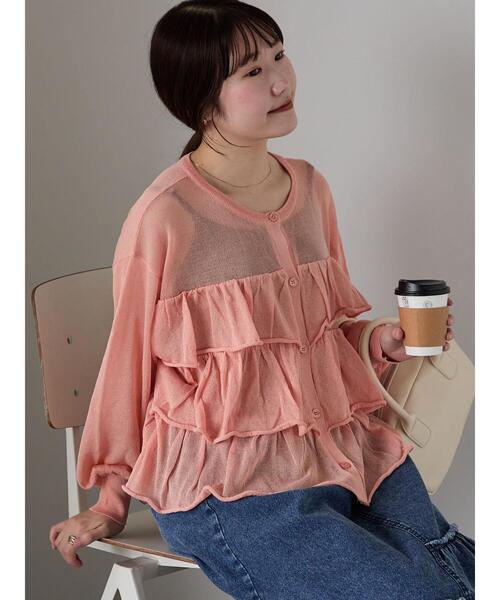 ティアードフリルが華やかな印象のカーディガン。 ほんのり透けるシアーなニットで、トレンド感のある軽やかな着こなしを演出します◎ カジュアルなデニムやガーリーなワンピースと合わせたコーディネートもおすすめです。