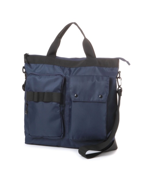 収納力と機能性抜群のトートバッグ。 ポケットが豊富で、荷物の整理をしやすいデザインです。 カジュアルにもクリーンにも合わせやすい素材感とシンプルさがポイント。 トートバッグとしてはもちろん、長さ調整可能なショルダー紐つきで、2WAYでお使いいただけます。
