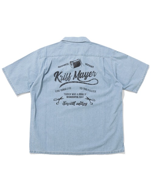 清涼感のあるシャンブレー生地を使用した半袖オープンカラーシャツです。ライトオンスデニムのような表情を表現。背中側には古着風の擦れプリントを施しています。アメカジライクなスタイリングに取り入れやすい1枚。夏のレイヤードコーデに映えるアイテムです。-------------------------シルエット:ワイド生地の厚さ:中肉透け感:なし伸縮性:なし裏地:なしケア方法:洗濯機洗い可(ネット使用)-------------------------●KRIFF MAYER(クリフメイヤー)家族みんなの毎日に楽しさと笑顔をお届けしたい。クリフメイヤーの服にはそんな思いがたくさん詰め込まれています。メンズ・レディース・キッズ、更にドッグウェアまで展開。何気ない日々が特別な思い出に変わる瞬間を演出する、ベーシックかつオリジナリティーあふれる新しいデイリーウエアを提案します。