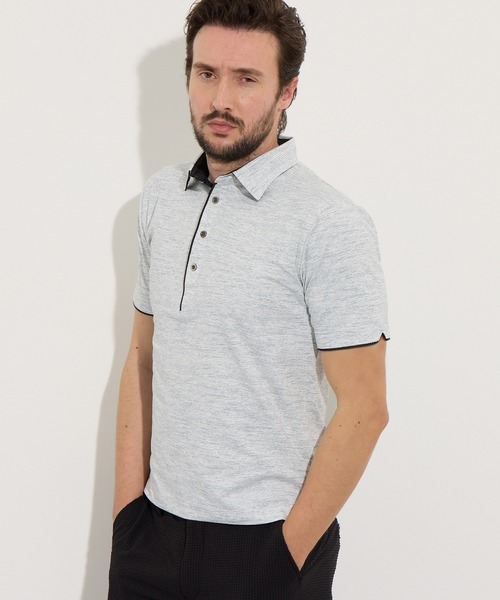 ■デザイン小さめの羽根衿が特徴のショートレギュラーカラーポロシャツになります。別生地に黒×白のピンストライプをバイヤスに使用することでシャープな印象。衿周りにはワイヤーを入れることで、着こなしのアレンジが効く仕様にしています。■サイズほどよいリラックスフィットで着心地抜群。ウエストにやや絞りを入れたシャープなシルエットが魅力です。■素材ハリコシのあるメッシュジャージになります。メランジ調のプリント加工を施すことで、スポーツポロシャツとは違った大人カジュアルを演出します。伸縮性:あり生地の厚さ:普通加工:昇華転写プリント■注意点衿裏に付属としてプラスチック線材を使用しています。局部的に繰り返し折り曲げたり、その部分にアイロンを当てないでください。生地の性質上、摩擦によりピリングが起こることがあります。着用時及びクリーニング等の取り扱いに御注意ください。