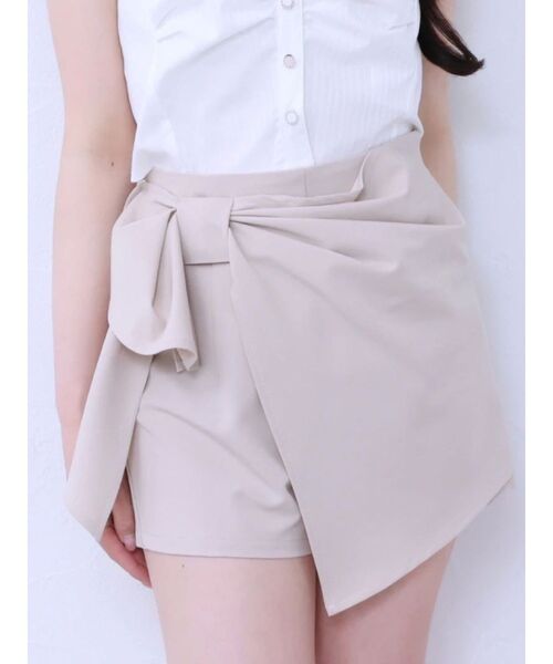 ビッグリボンディテールのドレープ感が女性らしい印象にしてくれるショートパンツです。薄すぎない生地で透けにくく、ラップデザインをキレイに見せます。後ウエストはゴム仕様でフィットしメリハリをつけてくれます。前から見るとスカートですが、パンツになっていて安心して着用いただけます。今季のEMロゴジャガードニットもちろん、シアー感のあるガーリーなブラウスに合わせてコーデするのもオススメです。----------------------------------------------♡商品のお気に入り登録完売カラーの再入荷通知や、ラスト1点、セールの通知をお知らせ致します。♡ブランドお気に入り登録新商品や再入荷など、いち早くブランドの情報を受け取ることができます。----------------------------------------------※サイズは、実寸サイズを測っているため多少誤差がでる場合があります。※重量は目安として、参考にして下さい。※商品画像は着用イメージです。 光や角度により、実物と色味が異なる場合がございます。 商品の撮影はサンプルで行っている為、カラーやサイズ等に変更がある場合がございます。 ご覧のモニター環境により実際の商品と多少色味が異なって見える場合がございます。