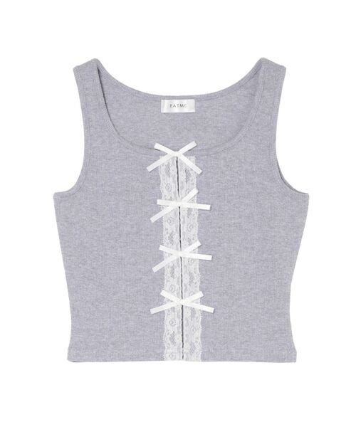 フロントに施したリボンとレーステープディテールが可愛いリブトップスです。伸縮性のあるリブ生地で着心地抜群です。深めのネックラインが顔回りをスッキリと見せてくれます。フロントにカットアウトを施されているので、レースベアトップスをレイヤードするのがオススメです。ボトムスデニムパンツに合わせてるのはもちろん、ミニスカートと合わせて大人ガーリーコーデもオススメです。----------------------------------------------♡商品のお気に入り登録完売カラーの再入荷通知や、ラスト1点、セールの通知をお知らせ致します。♡ブランドお気に入り登録新商品や再入荷など、いち早くブランドの情報を受け取ることができます。----------------------------------------------※サイズは、実寸サイズを測っているため多少誤差がでる場合があります。※重量は目安として、参考にして下さい。※商品画像は着用イメージです。 光や角度により、実物と色味が異なる場合がございます。 商品の撮影はサンプルで行っている為、カラーやサイズ等に変更がある場合がございます。 ご覧のモニター環境により実際の商品と多少色味が異なって見える場合がございます。