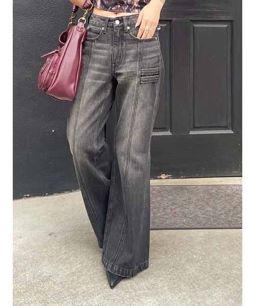 ■デザインセンターシームとハンガーループがポイントのフレアデニムです。裾から真っすぐに入ったラインが脚をすっきり綺麗に見せてくれます。ヴィンテージ感のある加工と色味で、トレンド感のある1枚に仕上げました。綿100%の生地を使用しているため、少しゆとりのあるサイジングに設定しています。※サンプルでの撮影のため、お届けする商品とサイズ感が異なります。お届けする商品はサンプルより1.5cm長くなります。■スタイリングコンパクトなシルエットの クロップド丈トップスなどがおすすめです。シンプルなTシャツ合わせなどでも決まる優秀なデニムパンツです。-------------- 透け感:なし 裏地:なし 生地の厚み:普通伸縮性:なし -------------- ■公式インスタグラム @evris_officialZOZOTOWNに掲載してない入荷情報や着用感、動画での紹介など随時更新中!■商品のお気に入り登録お気に入りアイテムのセール値下げ・再入荷・在庫1点など重要情報の通知をGET!■ブランドのお気に入り登録新商品や再入荷、セール、クーポン配布などお得な情報の通知をGET!