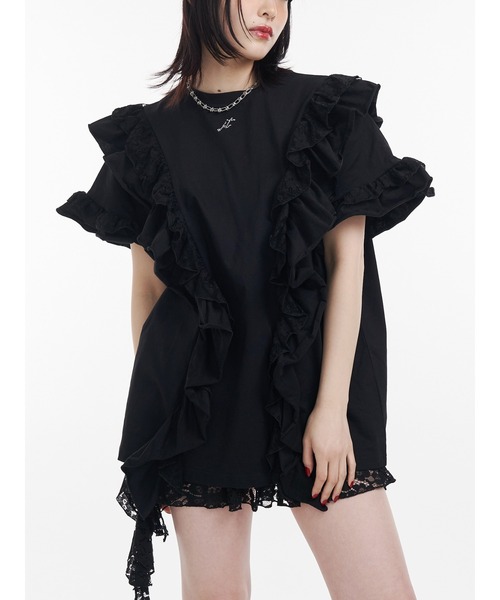 【ポイント】 フリルとレースが贅沢にドッキングされたガーリーなTシャツ。 ゆったりとしたサイズ感でチュニック風に着られる長めの丈感です! 後ろにもフリルがドッキングされているので1枚でかわいいのも嬉しいポイント! 【スタイリング】 1枚でコーディネートが完成する主役アイテム。 レースやシアートップスをレイヤードするのもかわいいです! デニムパンツやレースアイテムと合わせてカジュアルMIXなスタイリングもおすすめです。 【商品特徴】 透け感:(オフホワイト)ややあり 透け感:(その他カラー)なし 伸縮性:ややあり 生地の厚さ:普通 サイズ感:ゆったり 裏地:なし ポケット:なし ※着用画像はフラッシュの加減で実際の製品と色味等が異なる場合がございますので、生地のズームアップ画像をご確認ください。 ※ご利用の端末画面の設定により実際の商品と色味が異なる場合がございます。 ※正しいサイズはアイテムサイズ表をご確認ください。 ※商品のお取り扱いについては、脇についている洗濯ネーム類をご確認下さい。 【jouetie ZOZOTOWN お買い物ガイド】 ▼商品をお気に入り登録! ♡をクリック! 完売商品の再入荷やラスト1点の通知、セール開始時にお知らせ! ▼"jouetie(ジュエティ)"をお気に入りブランドに登録! 新商品や再入荷など、ブランド最新情報をいち早くお知らせ!
