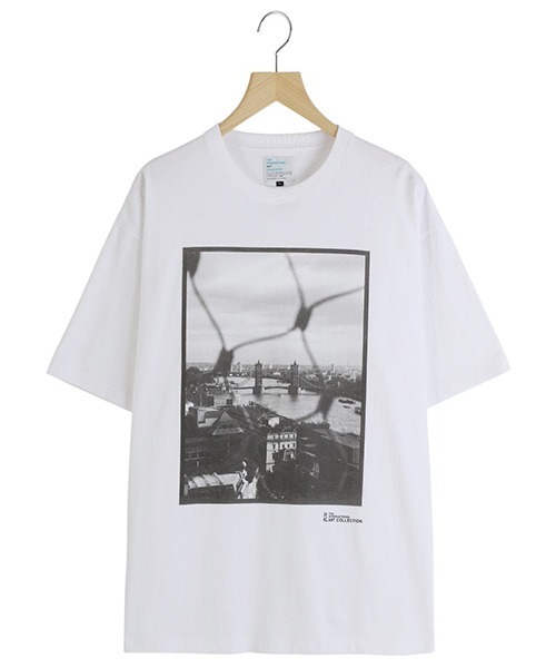 ロンドンのアートを纏う、一枚で魅せるフォトプリントTシャツ 【デザイン】 ・フロントに大きく配置された「2015 in London」をテーマにしたフォトプリント ・シンプルな白いTシャツに黒とグレーを基調としたアートワーク 【素材】 ・コットン100% ・オリジナルの糸で製作された生地は滑らかな素材感 【シルエット・サイズ】 ・レギュラーシルエット ・170cm、62kgのスタッフがLサイズを着用し、若干ゆとりのあるサイズ感 【アテンション】 ・サイズ選びはお好みや個人差がありますので一例としてご参照ください。 【商品画像について】 ・閲覧環境や撮影環境による光の違いにより、掲載画像は実際の色と異なって見える場合がございます。(商品の色調は白背景の商品単体画像をご参照ください。)