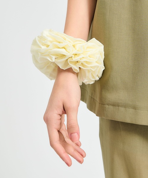 思わず目を奪われてしまうユニークで大きなシュシュ。生地が2重構造のシュシュ。ボリュームを抑えたい場合はつぶしてご使用ください。髪が太い場合はループを 1回巻いてお団子に、髪が細い場合やポニーテールにしたい場合は 2重にして着用できます。【GOOD SQUISH(グッド スクイッシュ)】イーストロンドンのシャックルウェル・レーンを拠点に、2021年に設立したブランドです。すべてのプロダクトは英国のデッドストックの生地を使用し、すべてハンドメイドでつくられています。GOOD SQUISHがフォーカスしているのはコミュニティ。街でこのアイテムをつけている人同士が出会ったら、会話が弾み、ときに孤独な瞬間に一体感をもたらしてくれる……そんな世界を目指しています。GOOD SQUISHのアイテムは共有、交換、そして遊び心なのです。つけ方はあなたの自由。髪を飾ったり、手首に巻いて袖のアクセントにしたり、バッグなどの小物につけてもいいでしょう。シーズンレスでタイムレス、そしてどこかノスタルジックなGOOD SQUISHをぜひあなたの相棒に添えてください。【お買い物をよりお楽しみいただくために】▽商品のお気に入り登録(ハートマークをクリック)完売カラーの再入荷通知や、ラスト1点の通知、値下げの通知を受けることができます。▽ブランドのお気に入り登録ESTNATIONのトップページ右上にある「お気に入りショップに追加」を押していただくと、新商品や再入荷など、いち早くブランドのお得な情報を受け取ることができます。