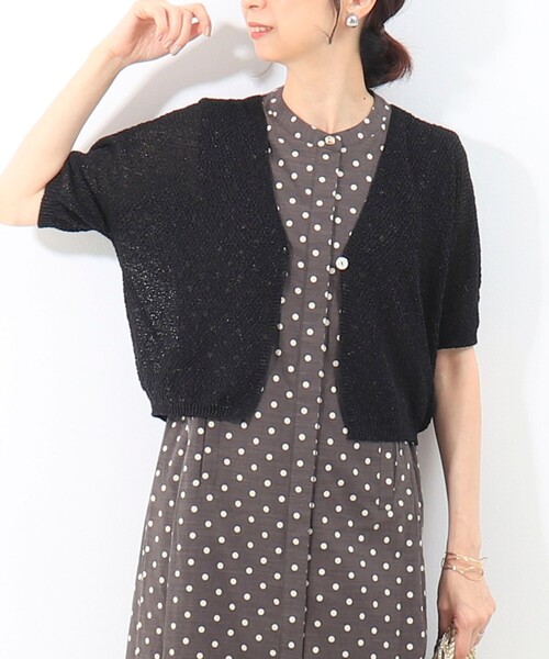 ◇25SS◇ MICO COULIER ◆Point ・快適な着心地とフィット感が得られるホールガーメント、MADE IN JAPANの価値あるカーディガン ・紙の風合いを糸に撚りこみ、シャリ感のあるサックリとした編地で清涼感があります ・吸水性・速乾性に優れ、風通しもよく夏に涼しく着られる1枚 ・控えめに入ったラメがコーディネートに抜け感をプラス ・半袖のパフスリーブ、ショート丈ですっきりとしたデザイン ・ワンピースやワイドボトムスとも好相性◎ ・小柄さんにもおすすめ ・軽量で持ち運びしやすく、デイリーにはもちろんご旅行にもちょうどいいアイテムです ---------------------------------------------------------- 透け感:あり 裏地:なし 伸縮性:あり 光沢感:なし 洗濯:手洗い可 ---------------------------------------------------------- ●お取扱い上のご注意● 末永くご愛用頂くために、アテンションタグを必ずご確認の上、着用又はお取り扱い下さい。 気になる商品は、お気に入り登録がオススメです! クーポン情報、入荷情報が、通知されるようになります。 ※店頭及び屋外での撮影画像は、光の当たり具合で色味が違って見える場合があります。商品の色味は、スタジオ撮影の画像をご参照下さい。 ※商品画像に関しては出来る限り忠実に表示出来るよう努めておりますが、お客様がご利用のモニターの設定及び特性により、実際の商品と比較し色味に若干の誤差が生じる場合があります。 ※製品洗い加工の商品は、多少の歪み、シワなどが見られたり、風合いやサイズ等が1枚1枚異なります。汗や雨等で濡れた時や、摩擦により色落ちし、他の衣料を汚すことがありますので(特に濃色のもの)ご注意ください。