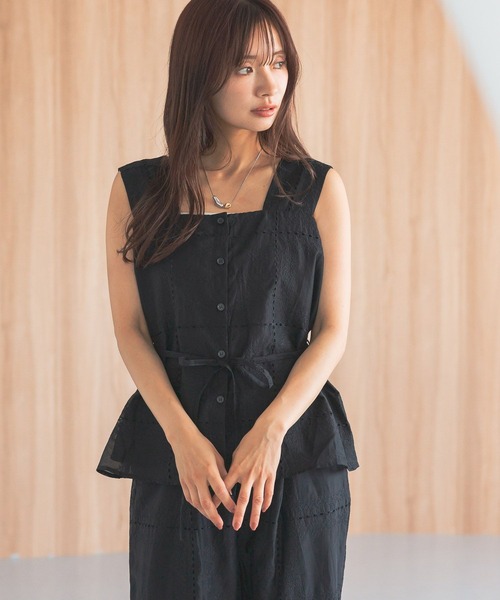 ーーー パッチワークレースを使ったカジュアルに着こなせるレースシリーズ ーーー ■point ・ジャケットや羽織りのインナーとしても着ていただけるノースリーブ ・四角柄を活かす為にウエストをくったりせず、あえて長方形のシルエットにしています ・カジュアルになりがちなデザインなのでウエスト紐でウエストマークするこおとで女性らしいシルエットに お好みの着こなしを楽しめます ・ショルダーも天幅を広めに設定することで抜け感をプラス ・手洗い可能です ■styling 同素材でご用意したパンツ(品番:571300)とスカート(品番:571302)とのセット着用がおすすめです。 フェミニンなスカートに合わせて思い切り女性らしく、 デニムやカジュアル系パンツでカジュアルダウンした着こなしも◎ ※屋外の光や照明の当たり具合で、実際の商品の色味とカラー別画像の色味に若干の違いが発生する場合がございます。 詳細画像と併せてご確認の上、ご注文いただきますようお願い致します。 【INFORMATION】 ■商品のお気に入り登録 完売していても再入荷時に再入荷通知を受け取ることができますので、是非ご登録ください! ■ブランドのお気に入り登録 新商品や再入荷などの情報を受け取ることができますので、是非ご登録ください!
