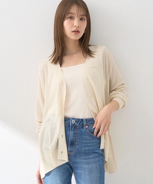 トレンドのシアー素材で仕立てたカーディガン。ゆとりのあるサイズ感のルーズシルエットが身体のラインを華奢に魅せてくれます。 サイドスリットが着こなしをすっきりと演出。 色柄物インナーとの組み合わせで幅広いスタイリングを楽しめるおすすめのアイテムです。 透け感[ややあり] 生地の厚さ[薄手] 光沢感[なし] 伸縮性[ややあり] 裏地[なし] ポケット[なし] ※モデル着用画像は光の当たり具合で色味が違って見える場合がございます。商品の色味は物撮りの画像をご参照ください。 ● earth music&ecology ● (アースミュージック&エコロジー) 「いいことある服。」 たかが服。されど服。波風の多い日々のなかでもほほえんで前を向くあなたを、つつんで一緒に歩きたい。 いいことあるかも。そんな期待までまとえる服をあなたに。 earth music&ecologyは、毎日を頑張る女性たちをちょっと前向きにするブランドです。 ▼ 商品のお気に入り登録がおすすめです ▼ 商品ページ内の「♡」ハートマークをクリック。完売時の再入荷や、最後の1点の通知、コーディネート画像がアップされたとき、お得なお値下げの際の通知を受ける事ができます。 【お知らせ】ページでも通知が確認できます。