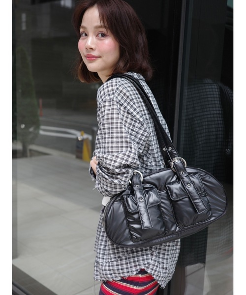 - select items from Casselini-JUMELLEらしい、ガーリーカジュアルなスタイルにぴったりなキャセリーニアイテム。 ______________________ 横長シルエットがトレンドライクなボストンバッグ。 外ポケットやベルトの金具、ナイロン特有の光沢感がコーディネートアクセントになるデザインです。 ダブルファスナーを使用しているため、口元が大きく開き、物の出し入れもスムーズ。 しっかり収納力があるので、デイリー使いにもおすすめです。 ______________________