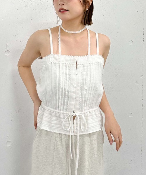 ■夏に華やぐブラウス■一気に季節が進むコットンブラウス。チョーカー付きで今年らしさもプラス。ピンタックレースで大人っぽい印象に。縦ラインが強調されるのでスッキリとしたシルエット。裾が絞れるタイプなのでお好みの丈で着て頂けます。一枚でもTシャツをレイヤードしても可愛く着こなせます。ーーーーーーーーーーーーーーー透け感:OFFWHITE若干なし裏地:なし伸縮性:なし光沢感:なし生地厚さ:普通洗濯方法:洗濯可※詳しいお手入れ方法は商品についているタグをご覧くださいーーーーーーーーーーーーーーー※ご利用のモニター環境により、実際の色味と多少異なる場合がございます。… information … 欲しいitemをお気に入り登録(♡マークをclick) ・お買いのがし対策…完売itemの再入荷やラスト1点の情報をお知らせ ・欲しいitemをお得にget…pricedownになったらいち早くお知らせ ・スムーズ検索…ZOZOのお気に入りアイテムページで簡単checkできるから、再検索不要♪