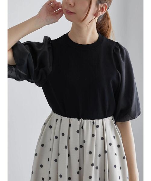 シアースリーブの異素材切り替えが愛らしさを漂わせるニット。袖に透け感と光沢感のあるシフォン生地を使用しており、ぽわんとしたやわらかなボリューム感で上品な甘さをプラスしてくれます。ボリュームのあるバルーンスリーブにすることで腕が華奢に見える効果も。身頃は目の細やかなニットでシルエットもすっきりとした印象に。オンにもオフにも活躍してくれる、スタイリングの頼れる味方です。※商品画像は、撮影環境やお客様のご利用のPC・スマートフォンのモニター環境などにより実物と色味に差異がある場合がございます。
