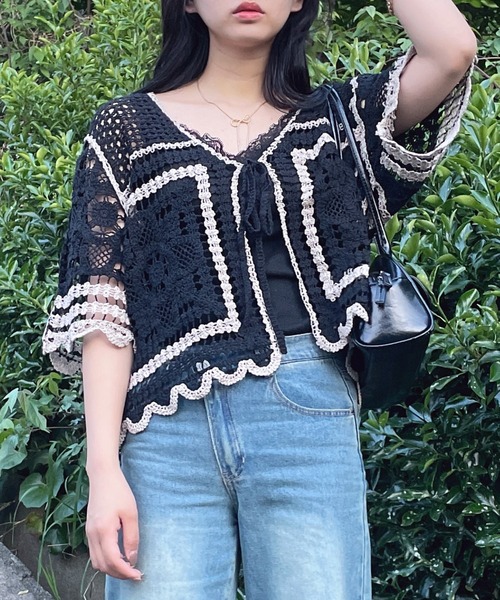 ざっくりとしたかぎ針編みが可愛い☆レイヤードにピッタリな半袖カーディガン フロントがリボンになった前開きデザイン!!かぎ針編みがアクセントになった、レイヤードするだけでコーデを華やかにしてくれる旬なカーディガンです。 合わせやすいカラー展開で、ほどよくゆったりとしたシルエットなので着心地も抜群♪ Tシャツやブラウス、ワンピ―スとのレイヤードはもちろん、キャミソールと合わせてもヘルシーな肌見せができておすすめです。 自分好みの1枚でいつものコーデをアップデート!!できる万能アイテムです。 ▼商品について ・画像の商品はサンプルとなります。実際の商品と色味、仕様、加工、サイズ、素材等が若干異なる場合がございます。 ・サイト上のカラー名と、お届け商品に記載されているカラー名が異なる場合がございます。 ・商品の色味は、撮影場所や光のあたり具合などにより色味が違って見える場合がございます 。また、お客様のお使いのPCのモニター環境などにより色味が違って見える場合がございます。予めご了承の上ご注文下さい。 ▼お取り扱いについて ・着用またはお取り扱いの際は、アテンションタグや洗濯ネームを必ずご確認ください。 ▼返品・キャンセルについて ・着用、洗濯後の返品は致しかねます。 ・商品到着後、着用前に商品を確認して頂きますようお願い致します。 ♪商品のお気に入り登録 お気に入り登録した商品は、ラスト1点になった時、完売商品の再入荷、セールになった時にお知らせします。 ♪ブランドのお気に入り登録 新商品の発売、再入荷、セール情報など、ブランドのお得な情報を受け取ることができます。