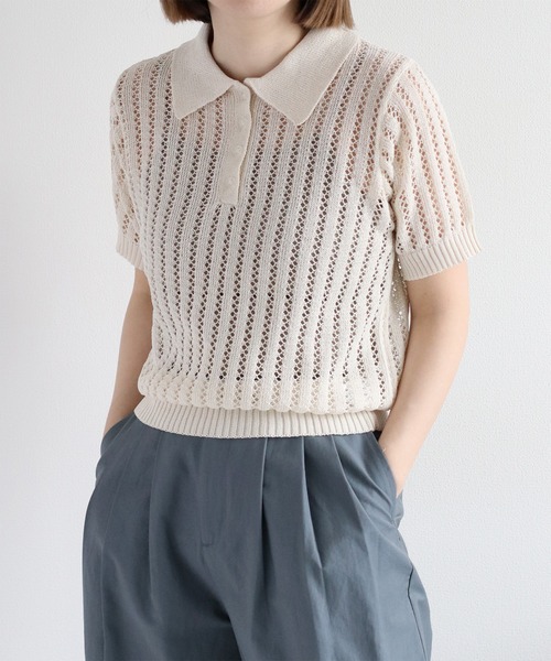 大人気ポロシャツデザインのメッシュニットが登場! 細かい折り目で通気性の良い生地感なので、 春から夏にかけて快適に着まわせます♪ ◇Point◇ ショート丈でコンパクトにまとまり、スタイルアップが叶うデザインのニットポロ。 スタイリングの邪魔をしないカラー展開で合わせやすく、春夏のコーディネートで大活躍のイチオシアイテムです! 使いやすいシルエットで色んなボトムスと相性抜群です☺︎ リラックス感がありつつも、フロントに施したボタンがきちんと感も演出。 襟がついているので女性らしい雰囲気を引き立ててくれます。 肩から二の腕にかけてフワッとしているので気になる二の腕もカバー! 縦に編み目が入れストライプ柄に仕立てているので、スタイルをスッキリ見せてくれる効果も♪ ◇Material◇ ⚫︎縦に入った編み目が可愛いので注目! ⚫︎ポリエステル100%素材なのでシワになりにくい! ⚫︎薄手でサラッとしているので長時間着ていても楽ちんな着心地 ⚫︎カラーは嬉しいブラック オフホワイト レッドの3色展開 ⚫︎通気性がいいので汗ばむ時期でも快適に着用できます ⚫︎引っ掛けが起こりやすい性質のためバッグやベルト、アクセサリーなどはお気をつけください ⚫︎洗濯、クリーニングの際も他のものとの引っかかりにご注意ください ◇Coordinate◇ カジュアルでもガーリーでも着まわせるので、この春夏に大活躍! 骨格ストレートさんは襟元のボタンを開けて抜け感をだすのがおすすめ☺︎ タックインでもアウトにしてもコーデのバランスが取りやすい丈感でスタイルアップ! フワッと広がる、ワンピースやスカートと合わせて女性らしいコーデに。 デニムとキャップを被って甘辛コーデもオススメです♪ ※照明や天候により実際の色味と異なって見える場合がございます。ご了承くださいませ 【キーワード】 #Y2K#20代#30代#40代#50代#透け感#メッシュ#ニットポロ#シアー