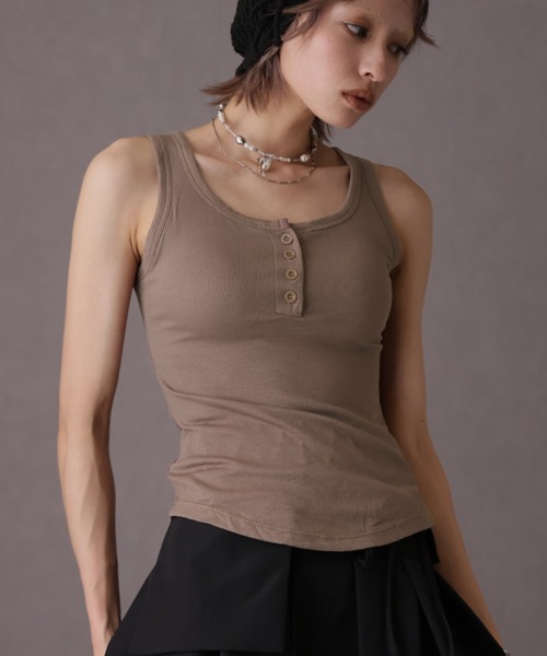 締め付け感なくナチュラルなシルエットをキープするカップ付きタンク ■デザイン ・ヘンリーネックのボタンデザインがカジュアルながらも女性らしい印象に。 ・リブ素材が縦ラインを強調し、すっきりとしたシルエットを演出。 ・シンプルながらも1枚でコーデが決まる、万能アイテム。 ■素材 ・伸縮性のあるリブ素材で、体にフィットしながらも快適な着心地。 ・柔らかく肌触りの良い生地で、デイリー使いにぴったり。 ・カップ付きでインナーなしでも安心の仕様。 ■スタイリング ・デニムやワイドパンツと合わせてカジュアルに。 ・お家でのリラックスタイムにもぴったりの1枚。 ・シャツやシアートップスのインナーとしても活躍し、レイヤードスタイルにも◎。 ------------------------------------------------ 【お買い物をよりお楽しみいただく為に】 ▼お気に入り登録 サイズ・カラーを指定して、♡マークをクリック![セール通知・ラスト1点の通知・完売アイテムの再入荷通知]を受け取ることができます。 ▼ブランドのお気に入り登録 新商品や再入荷、タイムセールやクーポン等いち早くブランドのお得な情報を受け取ることができます。