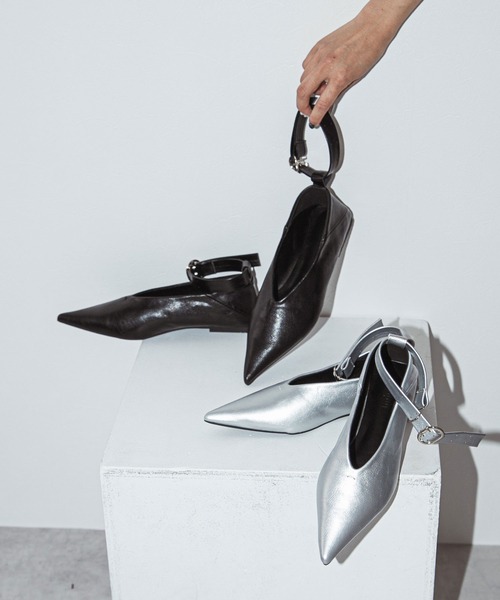 シャープなポインテッドトゥがトレンドライクなスタイルにスタイリングのアクセントになる一足【Design】シャープなシルエットが魅力のポインテッドトゥパンプス。Vカットのラインが足元をすっきり美脚にみせてくれます。太めのストラップはコーデのアクセントになるだけでなく取り外しも可能だから、どんなスタイリングにもバッチリ○踵を踏んでも履ける2way仕様になっているので、その日のコーディネートや気分によって履けるのも嬉しいポイント。1.0cmのヒール高さのフラットパンプスなので疲れ知らずで履けるのもおすすめポイントです。【Material】ソフトな素材を使用しているため、足当たりが良く長時間履いても疲れにくい1足です。【Coordinate】ロングスカートやボリュームパンツとの相性が良くすっきりしたスタイリングに。ストラップもついているので、ミニボトムとの相性も○※ご覧のモニター環境により、画像の色味と多少異なる場合がございます。 ご理解の程よろしくお願いいたします。【お買い物をよりお楽しみいただく為に】▼商品のお気に入り登録をおすすめします♡をクリックしてください。完売カラーの再入荷や、ラスト1点の通知、セールの際の通知を受ける事ができます。ブランドのお気に入り登録もご一緒にお願い致します。