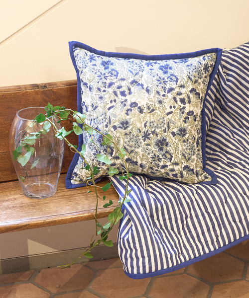 インド綿×職人技のお洒落なブロックプリント ●気分で使い分けできる2WAYデザイン ナチュラルなボタニカル柄と、すっきりとしたストライプを表裏で楽しめるリバーシブル仕様 ●やさしい肌触り インド綿100%のやさしい肌ざわりで、お部屋にぬくもりとやすらぎをプラス ●伝統のブロックプリント技法 インドの職人による手仕事ならではの、風合いが魅力 ●45×45cmの使いやすい定番サイズ ソファやベッド、床にもしっくり馴染む万能サイズ ●ファスナー付きでお手入れ簡単 カバーの取り外しもラクラク。 ※こちらの商品はカバーのみとなり、中材クッションは含まれません。 お取り扱い上の注意 ・本品は手作りによる製法の為、色味の個体差・色むら・プリントのずれ等が生じる場合がございます。 ・生産工程や染料などの影響により特有の匂いがすることがございます。気になる場合は風通しの良い場所で陰干ししてください。 ・染色の性質上、摩擦、水濡れ、発汗等により、色移りする場合がございます。 ・洗濯時に色落ちする場合がございますので、淡色のものと分けて、漂白剤や蛍光増白剤入りの洗剤の使用は避けて洗ってください。 ・長時間濡れたまま放置すると移染するおそれがございます。 ・生地の特性上、洗濯後多少縮むことがございます。 ・直射日光やライトに長時間さらされますと退色するおそれがございます。