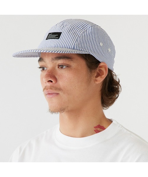 ハリ感のあるストレッチシアサッカー素材を使用したJETキャップ。シンプルデザインながらも着脱可能なサンシェードを備え、タウンユースからアクティブシーンまで幅広く活躍してくれる。フロントのブランドネームが程よく主張してくれる。【素材】ポリエステル100%