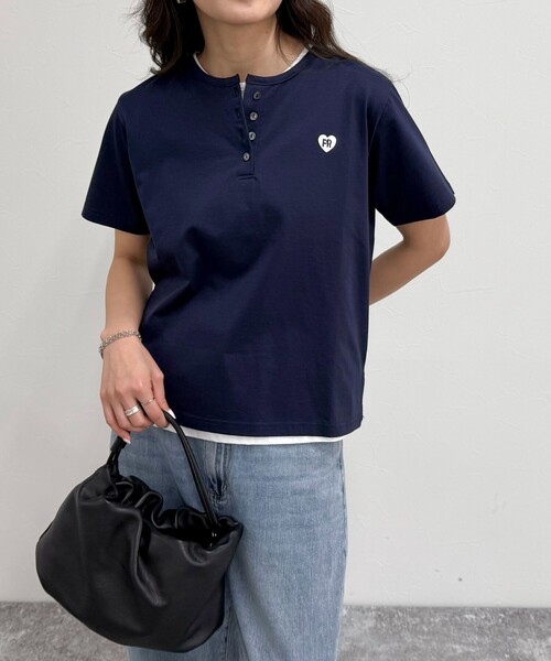 ◇fredy emue◇ 【2025 SS】 ハートFR刺繍が映えるヘンリーTシャツ ●point ・左胸のハートFR刺繍がワンポイントで可愛いヘンリーTシャツです ・スッキリ見えするシルエットでこれだけで決まる1枚 ・ヘンリーネックでボタンの開閉で着こなしの印象を変えて着用していただけます ・綿100%の柔らかな生地感で着心地の良さも魅力です ・カジュアルなデニム合わせはもちろん、バルーンスカートと合わせたフレンチライクな着こなしもオススメです 透け感:オフホワイトややあり 裏地:なし 伸縮性:あり 光沢感:なし 洗濯:手洗い可 ●お取扱い上のご注意● *商品を長くご愛用していただきたいため、アテンションタグがある場合は必ずご確認の上、着用又はお取り扱い下さい。 *画像の商品はサンプルとなりますので実際の商品と仕様(主にファスナー・釦等の付属品)、加工、サイズが若干異なる場合がございます。 *店頭及び屋外での撮影画像は、光の当たり具合で色味が違って見える場合があります。商品の色味は、スタジオ撮影の画像をご参照下さい。 *商品画像に関しては出来る限り忠実に表示出来るよう努めておりますが、お客様がご利用のモニターの設定及び特性により、実際の商品と比較し色味に若干の誤差が生じる場合があります。 *製品洗い加工の商品は、多少の歪み、シワなどが見られたり、風合いやサイズ等が1枚1枚異なります。汗や雨等で濡れた時や、摩擦により色落ちし、他の衣料を汚すことがありますので(特に濃色のもの)ご注意ください。 ※サンプルでの採寸のため、サイズ表はあくまで目安となります。予めご了承ください。 ◇商品のお気に入り登録◇ 気になる商品は、お気に入り登録がオススメです! クーポン情報、入荷情報が、通知されるようになります。