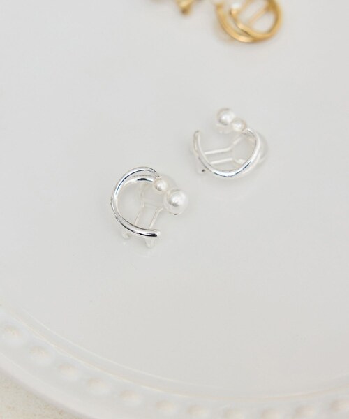 【デザイン・シルエット】 ・つけ外しがしやすいクリップ式イヤリング。 ・湾曲したメタルバーに、2粒パールビーズをあしらったデザイン。 ・クリップは耳たぶに優しいシリコンキャップ付き。 【カラー】 ・ゴールド、シルバーの2色展開。 【スタイリングポイント】 ・きちんと感のあるお仕事着から、デイリーのカジュアルスタイルまで幅広くマッチ。 ・フォーマルにも活躍。 ※撮影時の光、お使いのモニター環境によって色の見え方が違う場合がございます。