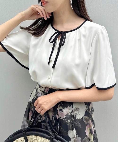 前後どちらでも着て頂ける汎用性の高いデザインブラウス ~POINT~ 配色のリボンところんとしたパール調がポイントになっており、通勤にもぴったりな一着です 二の腕が隠れる丈感なので安心感があります スカート合わせはもちろん、パンツとの相性も良くインしなくても可愛く着用が可能です◎ 【素材・機能】 透け感の少ない、落ち感のある布帛素材を使用 さらっとした表面感できれいめに着て頂ける素材感です ※ハンドウォッシャブル機能付き ※照明の関係により、実際よりも色味が違って見える場合があります。また、パソコン・スマートフォンなどの環境により、若干製品と画像のカラーが異なる場合もございます。 【スタッフコメント】 ・saori(153 )人気の配色デザインブラウスです!きれいめアイテムなので、夏の通勤着にもぴったり◎2WAYで着られるので、その日の気分にあわせて着こなしを変えられるのも嬉しいポイントです♪ 【25SS NEW ARRIVAL】 【25SS NEW COLLECTION】 モデル情報:身長163cm B81 W56 H82 着用サイズ:38(M) 店舗へのお問い合わせ商品番号:508-82032 ●製品寸法: 36(S):着丈52cm B101cm 袖丈26cm 肩幅34cm 38(M):着丈53cm B104cm 袖丈27cm 肩幅35cm 40(L):着丈54cm B107cm 袖丈27cm 肩幅36cm 42(LL):着丈55cm B110cm 袖丈28cm 肩幅37cm 備考: