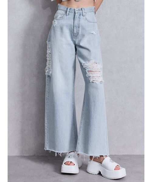 ■デザイン ワイドシルエットで今っぽさを演出。 ワイドでも脚長効果があるようにハイウエストのウエスト位置や、視覚的印象で、 サイド・左足のダメージ位置を上目にもってきているのにも拘った1本。 コインポケット部分にはクロスポイント刺繍入り。 ■スタイリング ハイウエストなので短め着丈のトップスが相性抜群です。 ■商品のお気に入り登録 再入荷通知やラスト1点、お得なプライスダウンの情報も受け取ることができます。 ぜひご登録ください◎ ・・・・・・・・・・・・・・・・・・・・・・ ※着用画像はフラッシュの加減で実際の製品と色味等が異なる場合がございますので、生地のズームアップ画像をご確認ください。 ※ご利用の端末画面の設定により実際の商品と色味が異なる場合がございます。