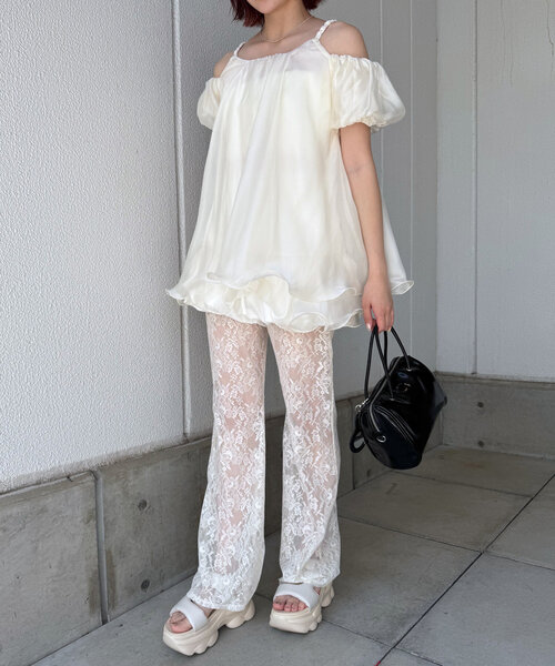 繊細なレースが可愛いレースパンツが登場! 商品コメント ・総レース仕立てで可愛らしい印象に仕上げたレースパンツです。 ・程よいワイドシルエットで体のラインを気にせず着用できます◎ ・ウエスト部分はゴム使用のため、リラックスした着心地です。 スタイリングポイント ・カジュアルなトップスと合わせて大人の抜け感を演出したり、ブラウスやシャツと合わせたりと様々なコーデを♡ ・きれいめスタイルワンピースやスカートにレイヤードして、ワンランク上のお洒落を楽しむのも◎ ・足元はヒールやパンプス合わせでこなれ感を演出するのも♪ ※洗濯、取り扱い 洗濯:40度限度 手洗い アイロン:低温120℃まで スチームなし タンブル乾燥:不可 ----------------------------------------------------- 裏地:あり 伸縮性:なし 光沢感:なし 生地の厚さ:うすめ ------------------------------------------------------ 商品のお気に入り登録➡お気に入りアイテムの値下げ・再入荷・在庫1点などの通知を受け取ることができます。ブランドのお気に入り登録➡ 新商品や再入荷、セール、クーポン配布などお得な情報を受け取ることができます。※サイト上のカラー名と、お届け商品に記載されているカラー名が異なる場合がございます。※商品の色味は、撮影場所や光のあたり具合などにより色味が違って見える場合が御座います。また、お客様のお使いのPCのモニター環境などにより色味が違って見える場合が御座います。予めご了承の上ご注文下さい。※ご注文いただいた予約商品のお届け時期の確認は、注文履歴ページより行えます。 ------------------------------------------------------