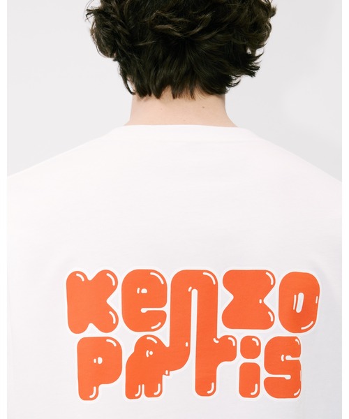 「KENZO Elephant Logo」オーバーサイズ Tシャツ 軽量なジャージー素材 コットン 胸に「Kenzo Elephant logo」、 「Kenzo Paris」ブランド ロゴプリント 男性モデル:身長185cm、着用サイズ:M オーバーサイズ フィット