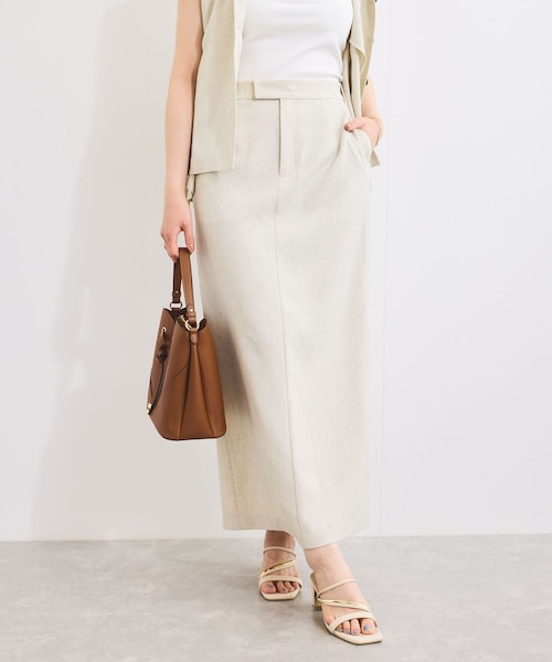 ◆2025春夏◆ <POINT> ・夏に着やすい清涼感のある軽い素材。 ・カジュアルな素材なので、デザインはスタイリッシュでミニマルなデザインに。 ・ウエストにゴムを入れリラックスして着用できます。 【デザイン・シルエット】 腰回りからストンとストレートに落ちるスタイリッシュなシルエットが女性らしいIラインスカート。 夏に向かって軽やかな印象で着れるようにリネン調の表面感のある素材をセレクトしました。 ウエストにはゴムを入れリラックスして着用できるのも嬉しいポイント。 【素材】 さらっとしたリネンライクな表面感の素材。 【カラー】 表面感のあるアイボリーとチャコールの2色展開。 ※チャコールは画像通りライトブラックとなります。 【おすすめのスタイリング】 同素材でお作りしているフレアジレ(品番:BVV35040)と合わせてセットアップでスタイリングしていただくのがおすすめ! カジュアル過ぎないデザインなのでTシャツなどラフなアイテムと合わせてカジュアルダウンさせてスタイリングするのもおすすめ。 華奢なサンダルを合わせて女性らしくスタイリングに。 【セットアップ対応の同シリーズ】 サイドベルトフレアジレ(BVV35040) ----------------------------- 裏地:あり 光沢感:なし 透け感:なし 伸縮性:なし(ウエスト後ろ一部ゴムあり) 生地の厚さ:薄手 その他:ポケットあり(両サイド)/飾りポケットあり(バック) 季節:春、夏、初秋 ----------------------------- 【モデル着用サイズ】 全色モデル身長:167cm、着用サイズ:M ※画像の商品はサンプルです。実際の商品と仕様、加工、サイズが若干異なる場合がございます。 ※画像によっては実際の色味と異なる場合があります。正しい色味は生地アップ画像をご確認ください。