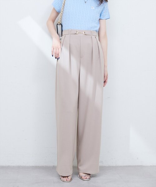 【2025SS natural couture】 ビットベルトストレッチパンツ ■Design 上品さと着心地の良さを兼ね備えたパンツ。 ハイウエストデザインと、ゴールドのビットベルトがアクセントになり、スタイルアップ効果も叶えます。 フロントのタックデザインで縦ラインを作り、きれいなシルエットに。 トレンド感のあるストレートシルエットは、気になる体型をカバーしつつ、こなれた雰囲気を演出します。 ■Styling ウエストのビットベルトを引き立てるため、トップスをウエストインしたスタイリングがおすすめです。 ハイウエストデザインなので、コンパクトな丈感のトップスをウエストアウトでも◎ ブラウスを合わせてきれいめなオフィスカジュアルはもちろん、Tシャツなどでカジュアルダウンしても大人な印象にきまります。 ■Fabric カットジョーゼットのような着心地のいいさらっとした生地感。 ========================= お手入れ方法:手洗い 透け感:なし ポケット:なし 裏地:なし 伸縮性:ややあり 光沢感:なし 生地感:さらっとした生地感 ========================= ※着用、お取り扱いの際は、商品に付いている品質表示とアテンションタグを必ずご確認ください。 【お気に入り登録でお得な情報がいっぱい】 ・「商品のお気に入り登録」で再入荷通知や、ラスト1点の通知、セール通知をいち早く受け取ることができます。 ・「ブランドのお気に入り登録」で新商品や再入荷など、お得な情報を受け取ることができます! ※店舗の入荷時期は商品によって異なります。 店頭の在庫状況につきましては各店舗にてお問い合わせください。 ※撮影時の光の関係で、画面上の画像と実際のお色とでは若干の色差が生じる可能性がございます。 また、ご覧いただいているモニター画面や、お使いのブラウザによっても、お色の違いがございますことをあらかじめご了承くださいませ。 20250502 2025SS_natu 25SS