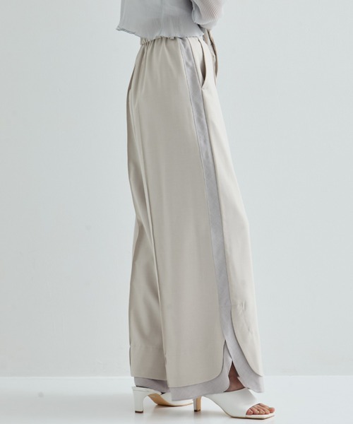 〈デザイン〉 ・気品のあるストレートスラックスをベースに、前後のパーツを両脇で重ねたデザインボトム ・サイドスリットを施しており歩く度に軽やかさを楽しめるディテール ・シアーのサイドラインが足を縦長にスッキリ見せる効果も◎ ・比較的太め幅のウエストベルトと背面のゴム入り仕様で楽ちんな履き心地 ・ブラウスとリンクさせたディテールでセットアップも可能 〈素材〉 ・ドライタッチのストレッチ素材に、シアー素材を重ねた軽やかな異素材使い ・ストレッチ性があり日常動作がしやすい快適な素材 ・どちらもマットな表情のポリエステルで上品な印象に ・シアー部分は透けすぎず安心 透け感 L.BGEは少しあり。ベージュのインナー推奨 裏地 あり 伸縮性 あり 洗濯:手洗い可 STUDIOUS/ステュディオス EDGY DAY-WEAR -エッジの効いたデイウェア-溢れ出るエナジーを纏えるエッジの効いたデイウェアブランド。テーラリングを軸に、パンツスーチングやそれらを再解釈したスカート、ドレスなどを展開。パーソナルを引き立たせるミニマルなスタイルから、時代を駆け抜ける前衛的なスタイルまで自由自在に。 インスタグラムアカウント(@studious_______)のアンダーバー7本には"毎日のベースとなる服"という意味を込めた。モードベーシックブランド "STUDIOUS" は 〈セレクトショップSTUDIOUS〉 で手に入る。 ---------------------------------------------------- 【お買い物をよりお楽しみいただく為に】 ▼商品のお気に入り登録をおすすめします! ♡をクリックしてください。 完売カラーの再入荷や、ラスト1点の通知、セールの際の通知を受ける事ができます。 ブランドのお気に入り登録もご一緒にお願い致します。