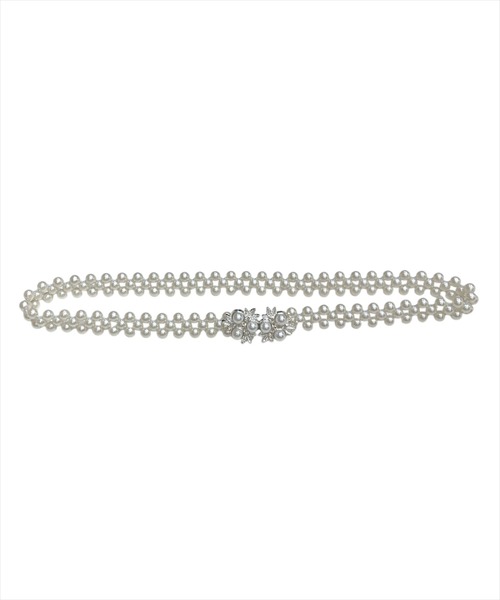 ワンピーススタイルや浴衣の帯締めとしておすすめなパールベルト【Design/Styling】・つややかなパールをふんだんに使用したパールビジューベルト。・バックルにはビジューを散りばめて上品さをアップ♪・伸縮性のあるゴムベルトなので、ぴったりウエストにフィットします。・デニム素材のパンツやワンピースなどとの相性も◎・浴衣の帯締めとしてプラスすれば、一気にコーディネートを華やかにしてくれます。F:全長68.5cm/幅1.5cm/バックル縦2.5cm/バックル横5.3cm